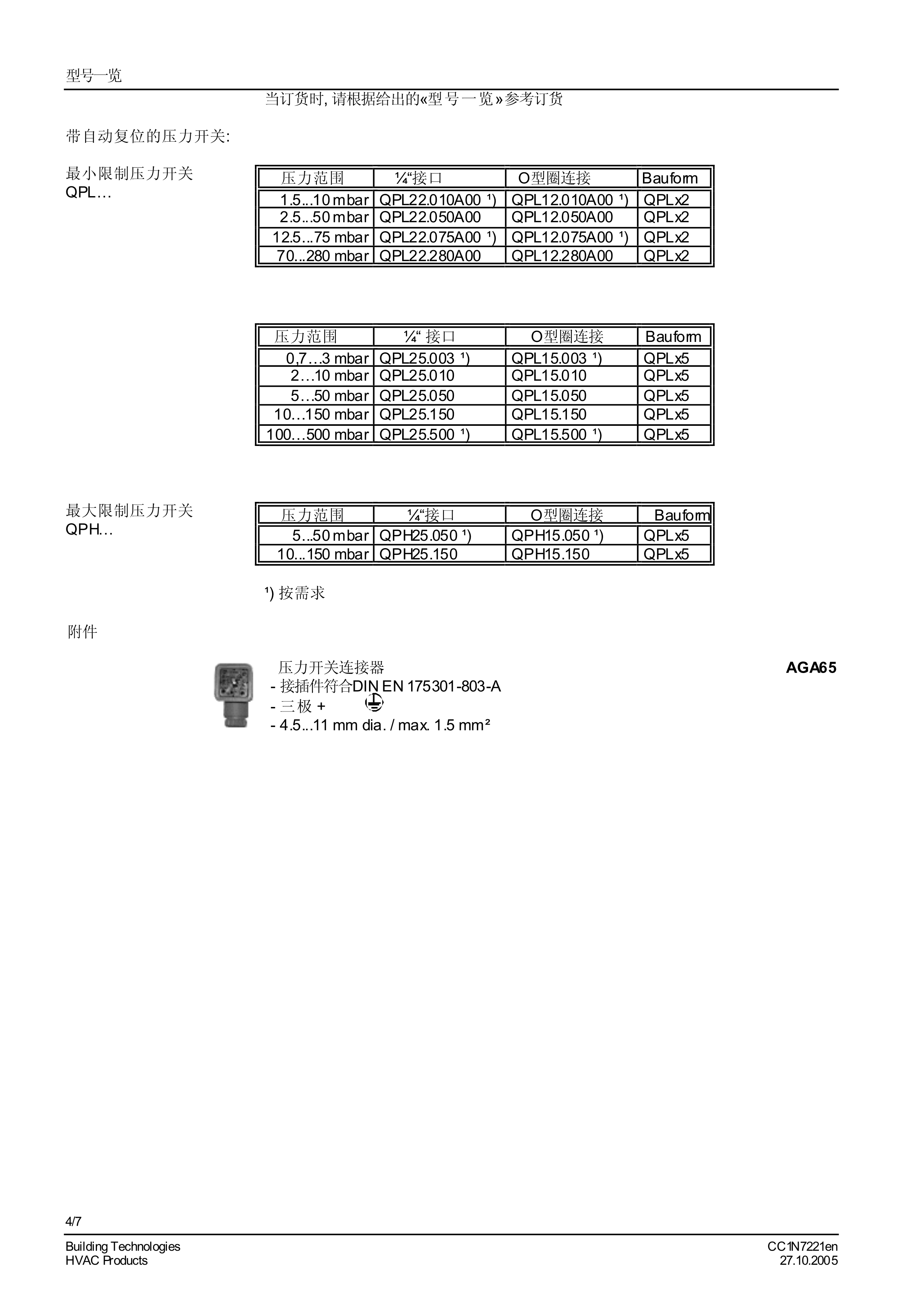 西門子QPL系列壓力開關